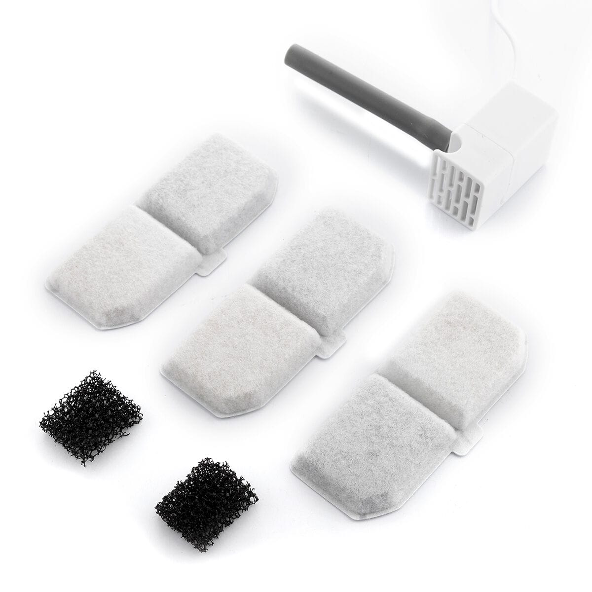Una fontana automatica per animali domestici composta da diverse parti, che si assemblano facilmente seguendo le istruzioni incluse. Include strisce adesive per tenere insieme il coperchio e il contenitore durante il trasporto. I 2 filtri in spugna per la pompa sono lavabili e riutilizzabili. I 3 filtri per l’uscita dell’acqua durano circa 3-4 mesi ciascuno. Può essere utilizzato anche senza filtri.
