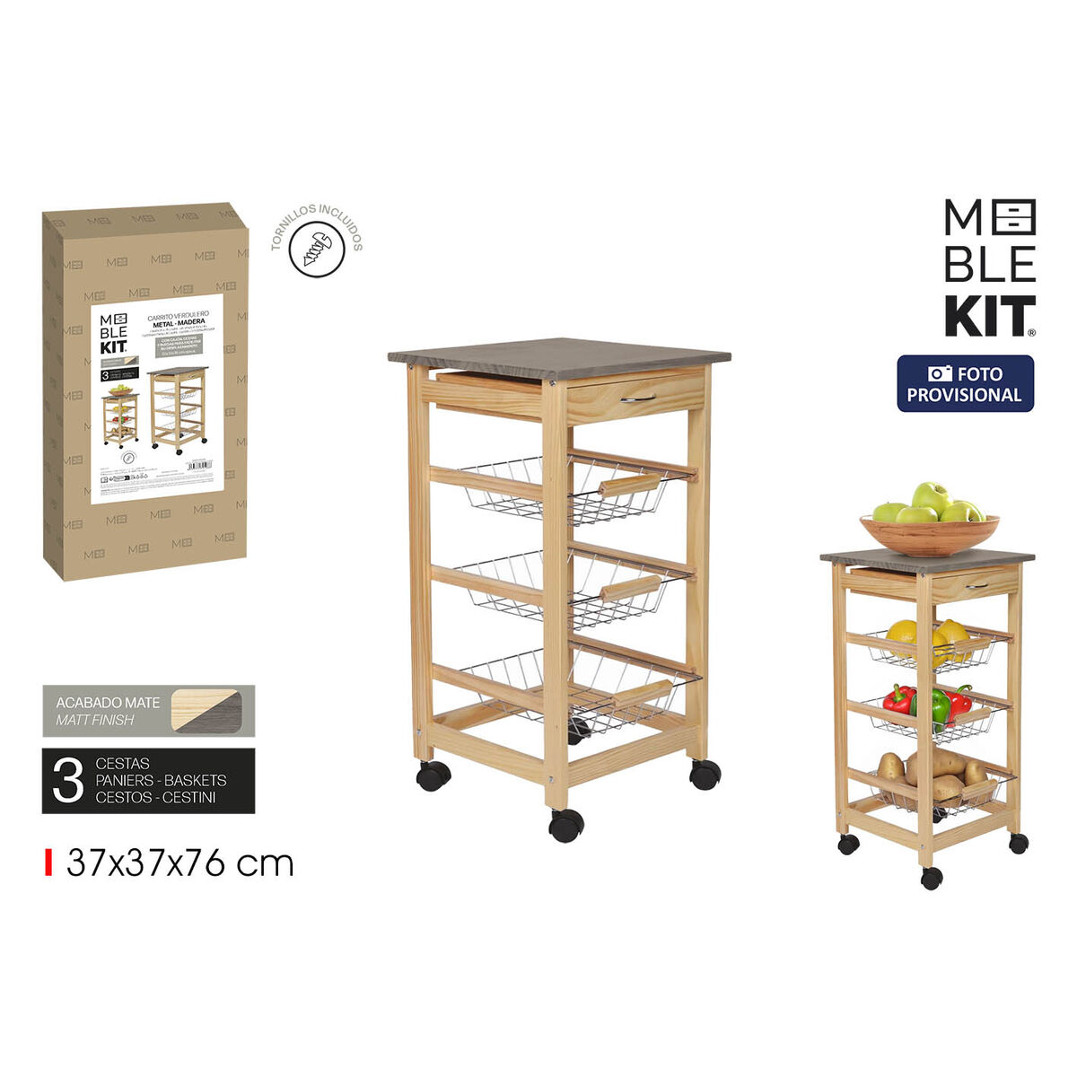 Carrello per Verdure MobleKit Marrone Grigio Legno Metallo 37 x 37 x 76 cm (2 Unità)