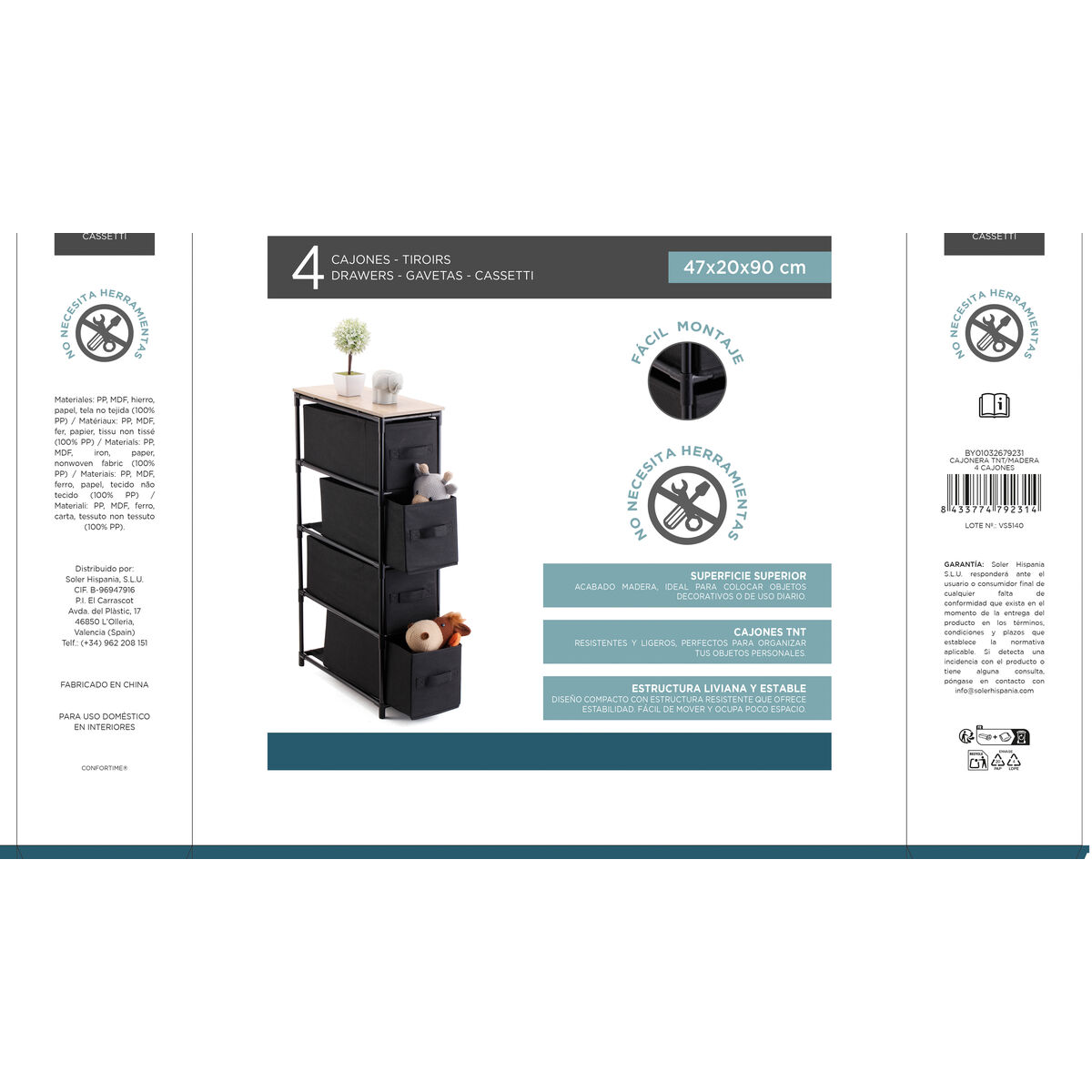 Cassettiera Confortime Marrone Nero 47 x 20 x 90 cm (4 Unità)