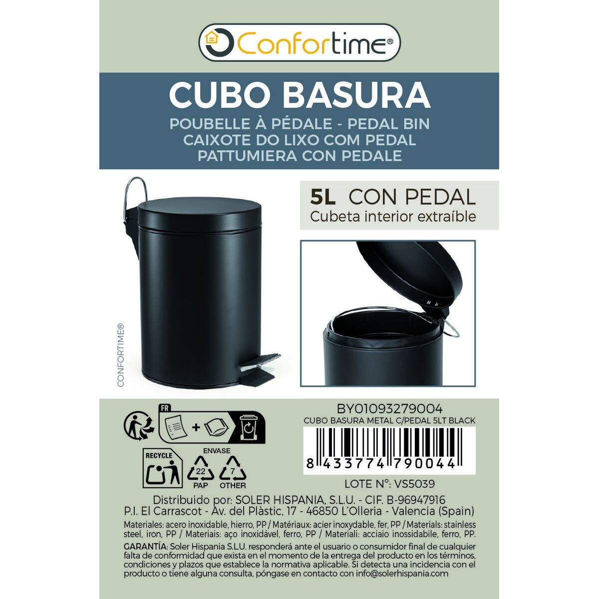 Se sei alla ricerca di novità alla moda sul mercato, ti presentiamo Cestino a pedale Confortime Nero 5 L (6 Unità)!