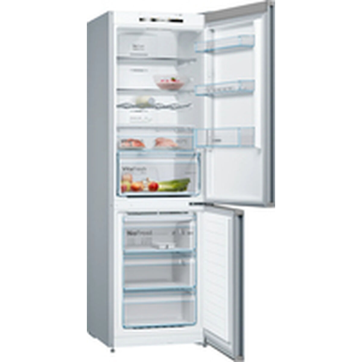 Il frigorifero combinato BOSCH offre una soluzione efficiente e moderna per la conservazione degli alimenti in casa, distinguendosi per il suo design in acciaio inox e dimensioni standard, con una larghezza di 60 cm e un'altezza di 186 cm, facilitando l'integrazione nella maggior parte delle cucine. Dotato di motore inverter, garantisce un funzionamento silenzioso e stabile, con un livello di rumorosità di soli 36 dB. La sua classe energetica D assicura un consumo efficiente e responsabile senza compromettere le prestazioni. Il frigorifero dispone di una capacità netta di 237 litri, mentre il congelatore offre 89 litri di capacità, spazi ideali per una gestione comoda e flessibile della spesa settimanale. Include un vano zona fresca, progettato per prolungare la conservazione di frutta, verdura e altri prodotti deperibili in condizioni ottimali di umidità e temperatura. Presenta comandi tramite pulsanti facili da usare e la porta si apre verso destra, adattandosi alle configurazioni più comuni delle cucine. Il design è dotato di spina EU per la compatibilità con gli impianti standard europei. Questo modello BOSCH rappresenta una scelta sicura per chi desidera un elettrodomestico funzionale, silenzioso e con finiture durevoli, perfettamente adatto alle esigenze della casa contemporanea.