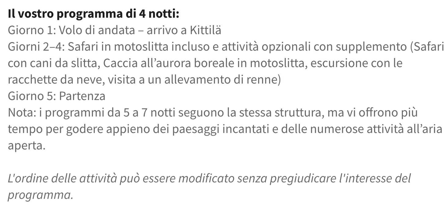 Disponibilità da gennaio a marzo, periodo perfetto per vedere l'Aurora Boreale, con partenza da varie città italiane.