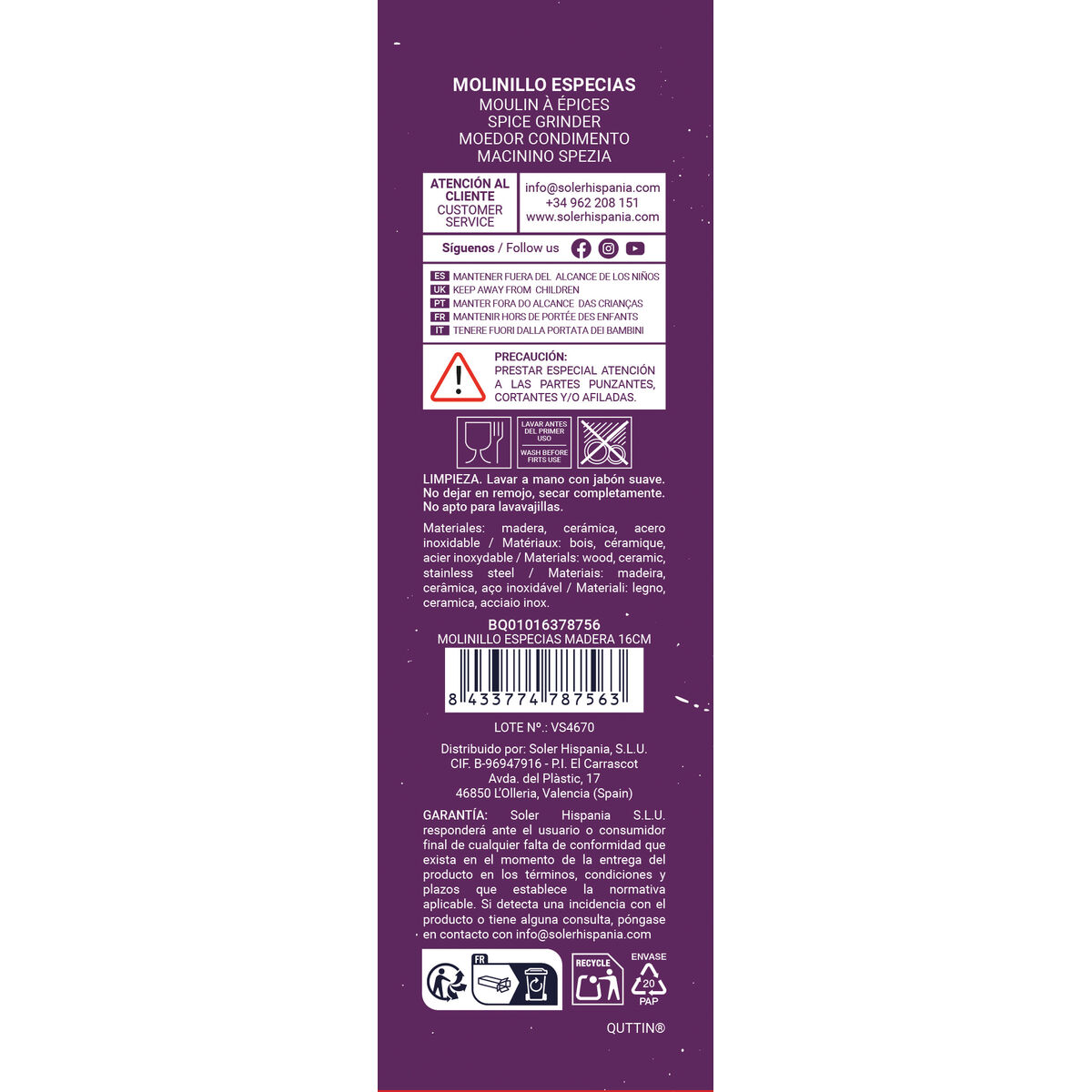 Macinapepe Quttin Marrone Legno 5 x 5 x 16 cm (20 Unità)
