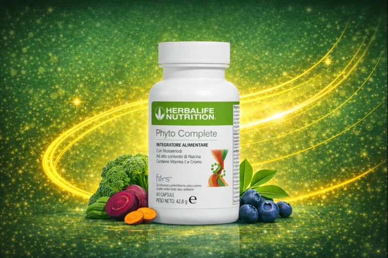 Phyto Complete contiene caffeina naturale, Vitamina C, Vitamina B3 e Cromo* e ed estratti botanici tra cui guaranà, tè verde, pompelmo, uva e carota nera.