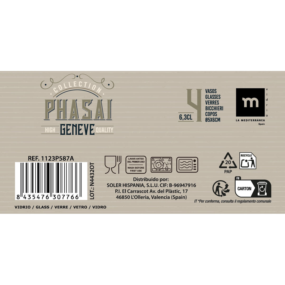 Set di Bicchierini da Chicchetto La Mediterránea Phasai geneve Trasparente Vetro 63 ml 4 Pezzi (24 Unità)
