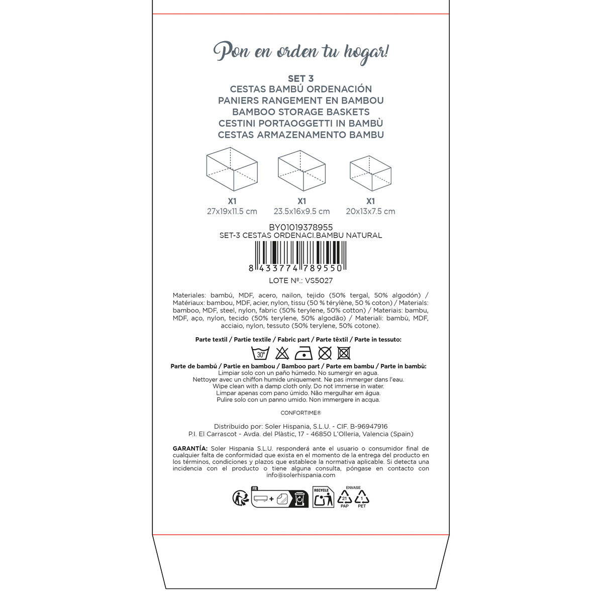 Set di Cestini Confortime Marrone Beige Bambù 3 Pezzi (8 Unità)