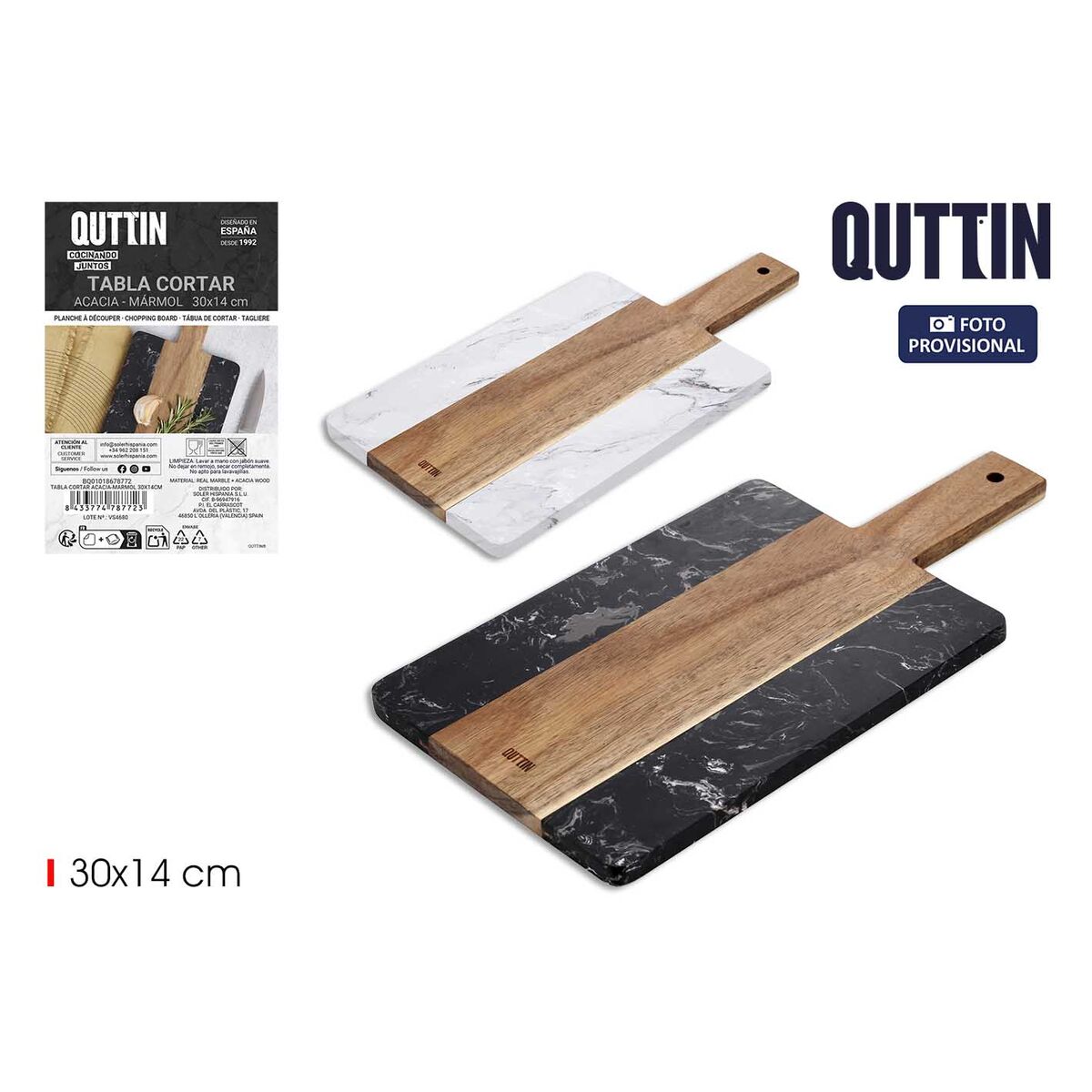 Se ti piace curare ogni singolo dettaglio della casa ed essere sempre alla moda in tema di prodotti che ti renderanno la vità più facile, compra Tagliere Quttin 30 x 14 cm Marmo Legno di acacia (12 Unità) al miglior prezzo.