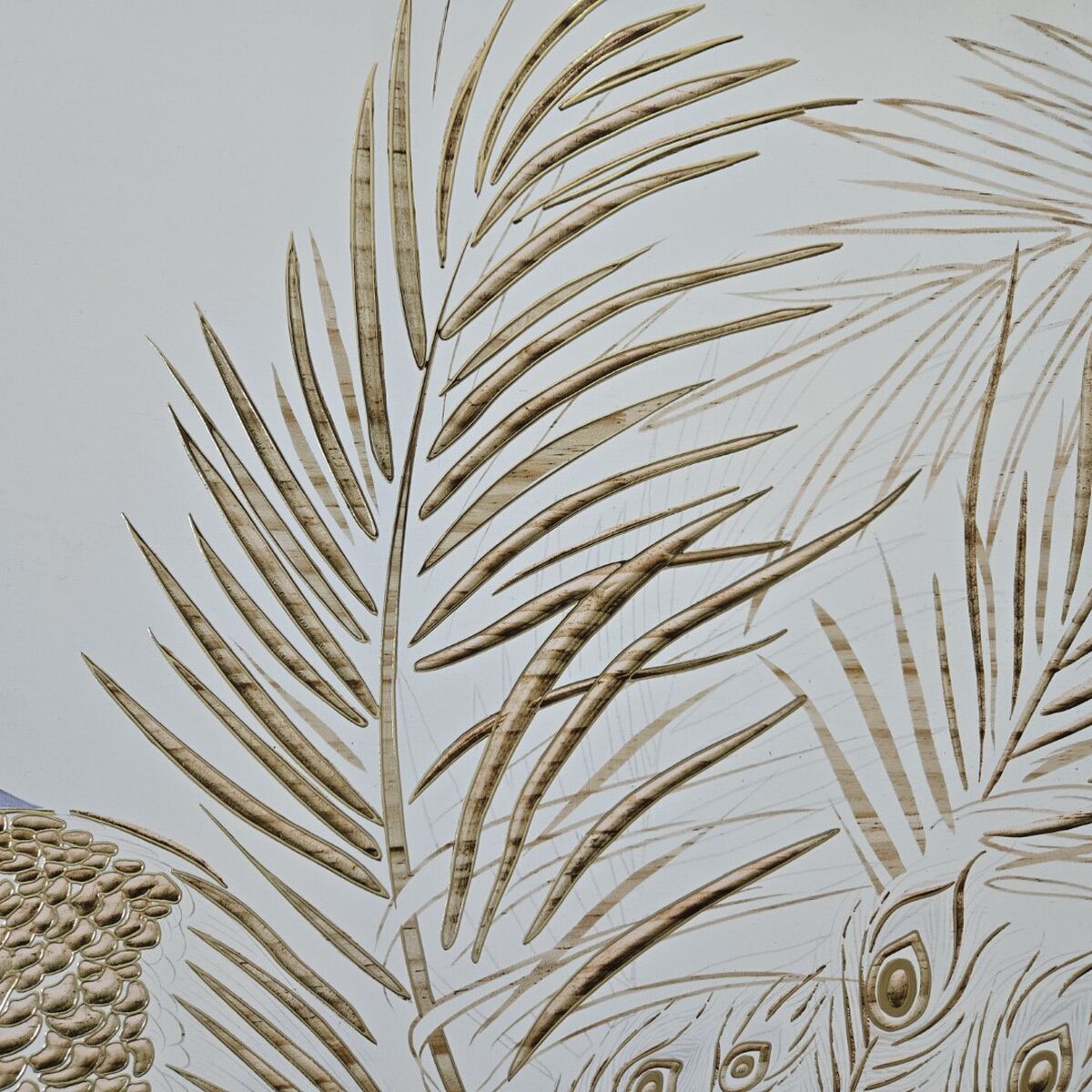 Tela Home ESPRIT Bianco Naturale Pavone Tropicale 100 x 5 x 100 cm (2 Unità)