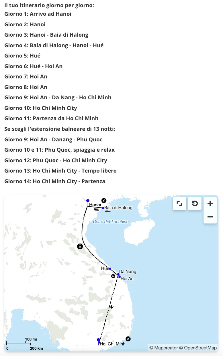I pacchetti che trovate di seguito infatti, includono il volo con partenza da diversi aeroporti italiani con bagagli da stiva inclusi, accoglienza e un tour favoloso 10 notti (o 13 notti se aggiungete tappa a Phu Quoc🏝️) con vari pasti come da programma, tutti i transfer, un volo interno, soggiorno in ottime strutture e persino un'incredibile notte in crociera nella baia di Halong 😍