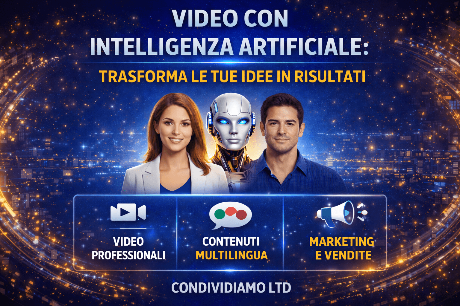 Il problema è che creare video professionali richiede tempo, competenze, attrezzature e costi elevati. Ed è proprio qui che entra in gioco il servizio di produzione video con Intelligenza Artificiale di Condividiamo LTD.